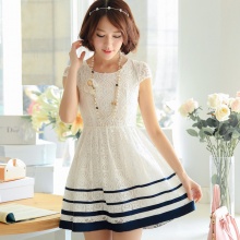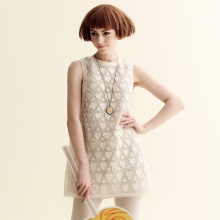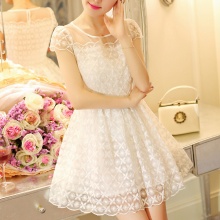 夏装新款修身假两件无袖绣花蕾丝连衣裙